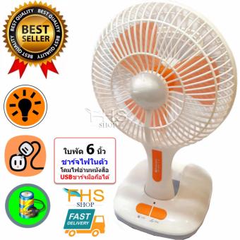 - ชื่อสินค้า Kamisafe KM-F0166 พัดลมขนาดใบ 6 นิ้ว ชาร์จไฟในตัว+โคมไฟ+USB ชาร์จมือถือได้